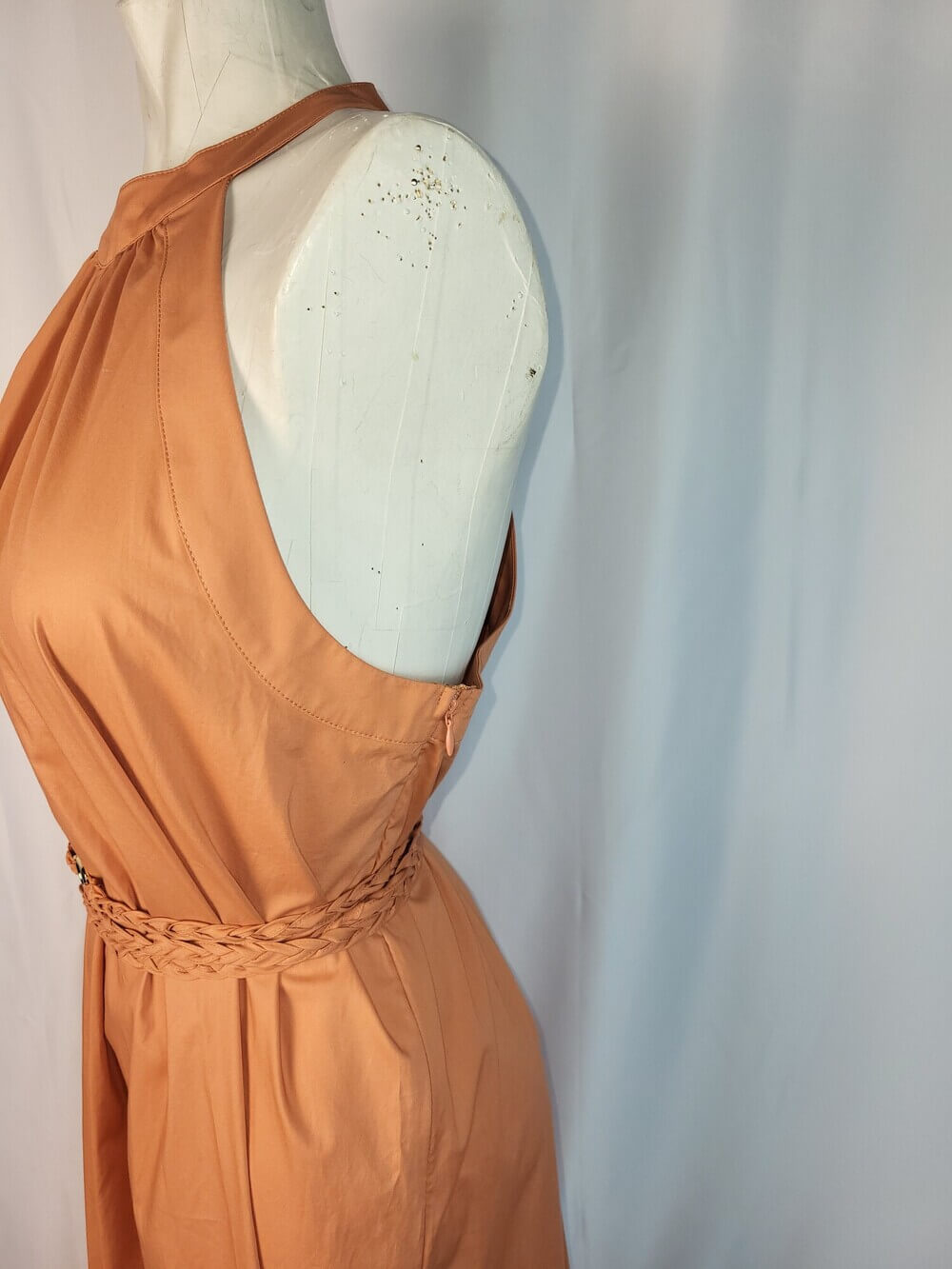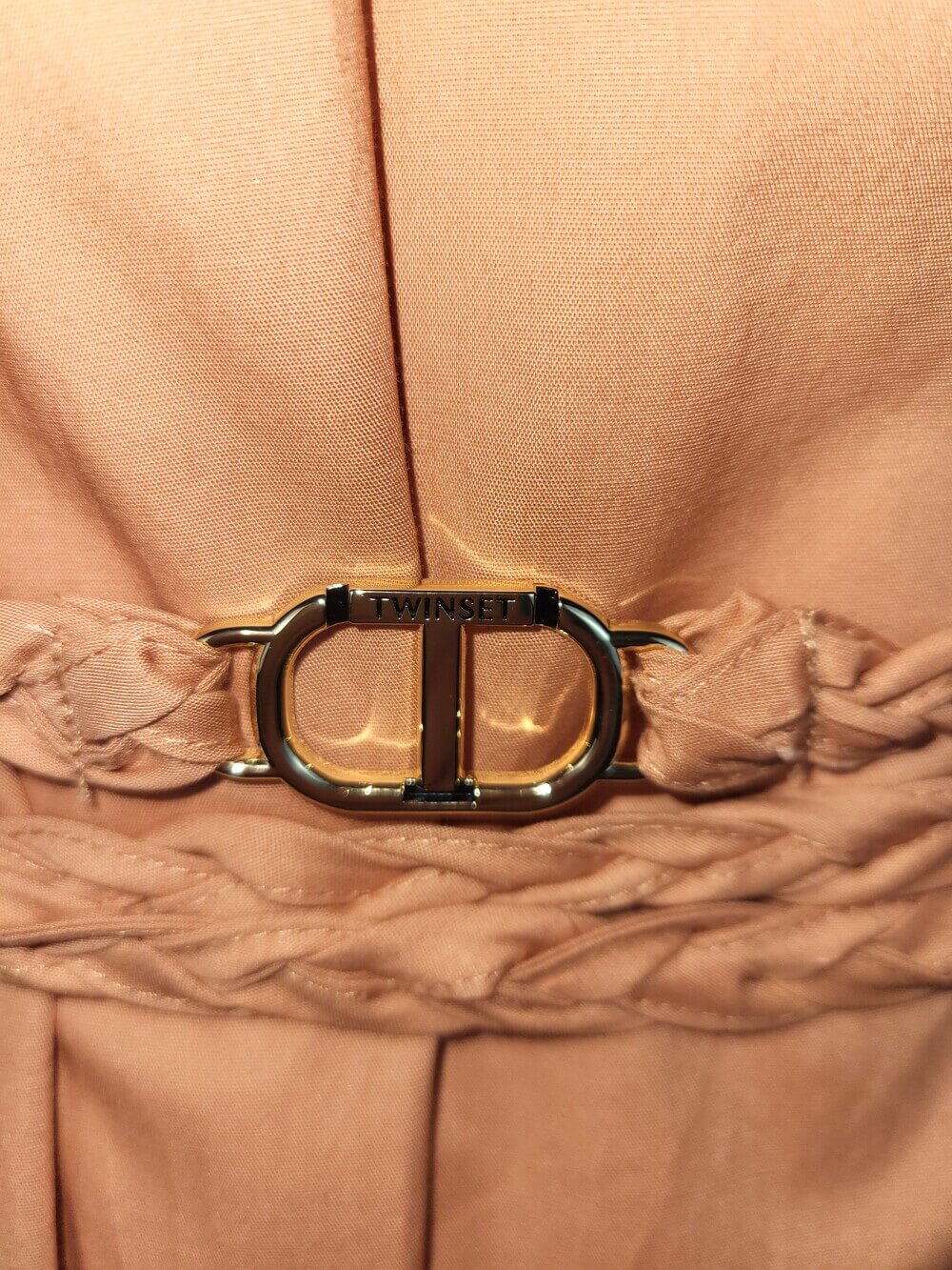 Beschrijving: Prachtige halterjurk met sluiting in de nek. Soepel vallende elastische katoen. Draag deze jurk met de toegevoegde gevlochten riem met Twinsetlogo